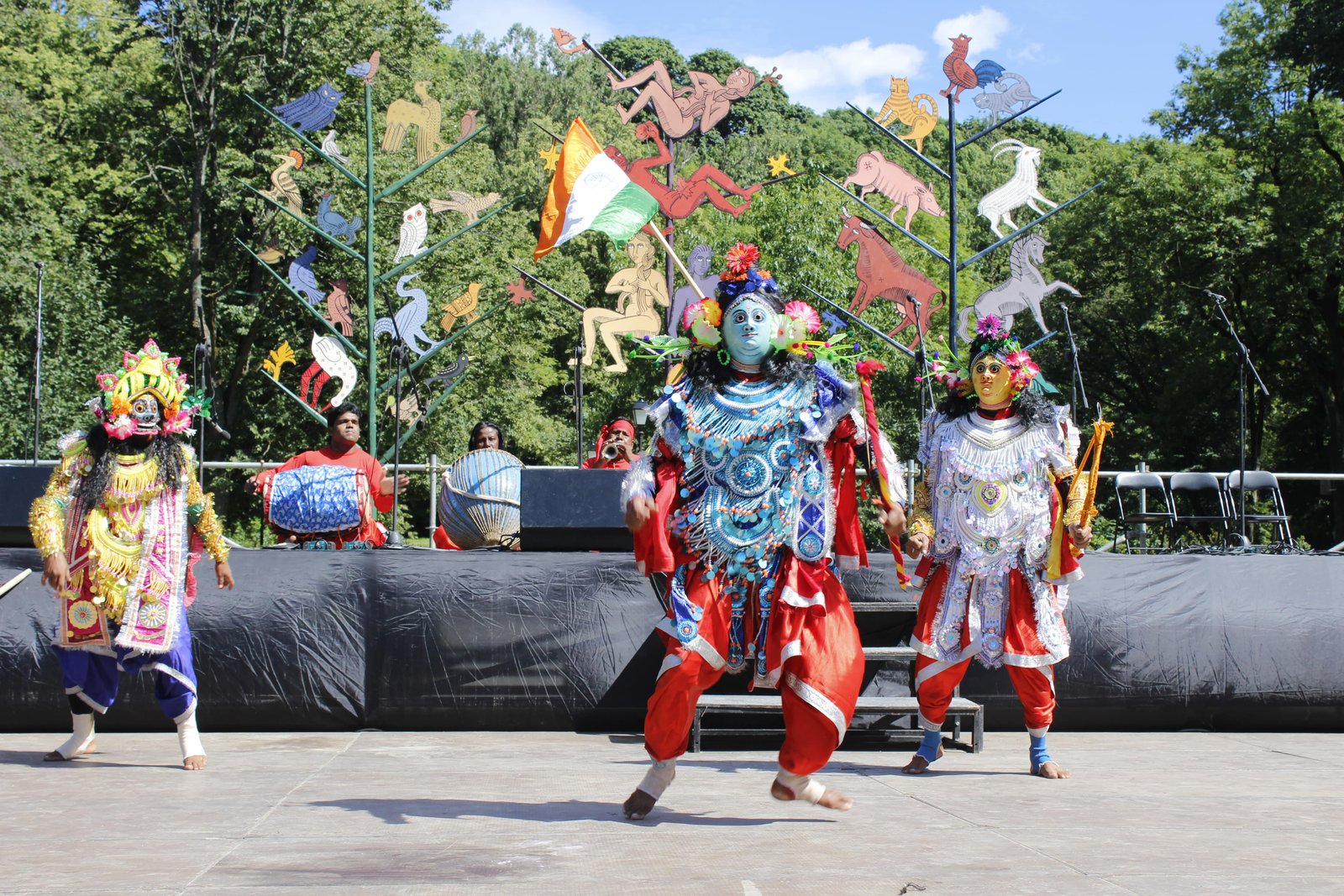 The Chau dancers wear ornate and elaborate masks and dazzling costumes made of tinsel and brocade. The masks used in Purulia Chau are elaborate and ornamental. The masks are made of clay and paper pulp with ornamentation in the headgear.