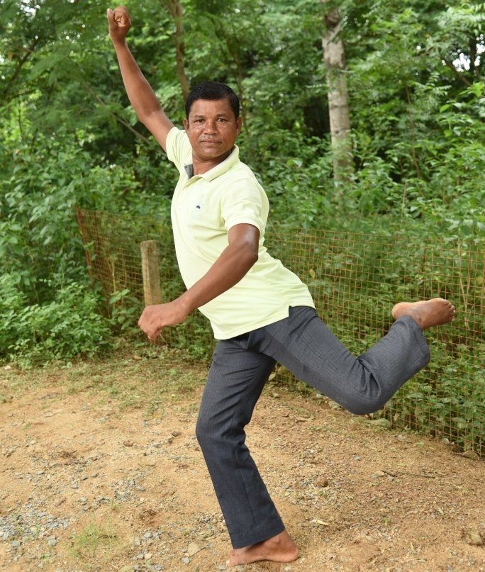 From the small hamlet of Pithakutust, Dibar Naik’s journey reflects sheer perseverance. Though under-matric by formal education, he honed his art under Guru Sei Krishno Singh Mohanta, Guru Ramaniranjan Mohanta and Guru Achintya Kumar Behera at the Mayur Art Centre, Bhubaneswar. His performances have carried Mayurbhanj Chhau across India — from Kharavela Festival, Puri Beach Festival and Brahan Natyanjali in Tamil Nadu, to stages in Mysore, Assam, Manipur, Nepal and Bangalore. Awards from the District Council of Culture and numerous festivals cemented his reputation. Today Dibar is equally respected for shaping young dancers at Arun Chhau Nrutya Pratisthan, Sansimila, transmitting the precision and energy he himself learned on tour.
